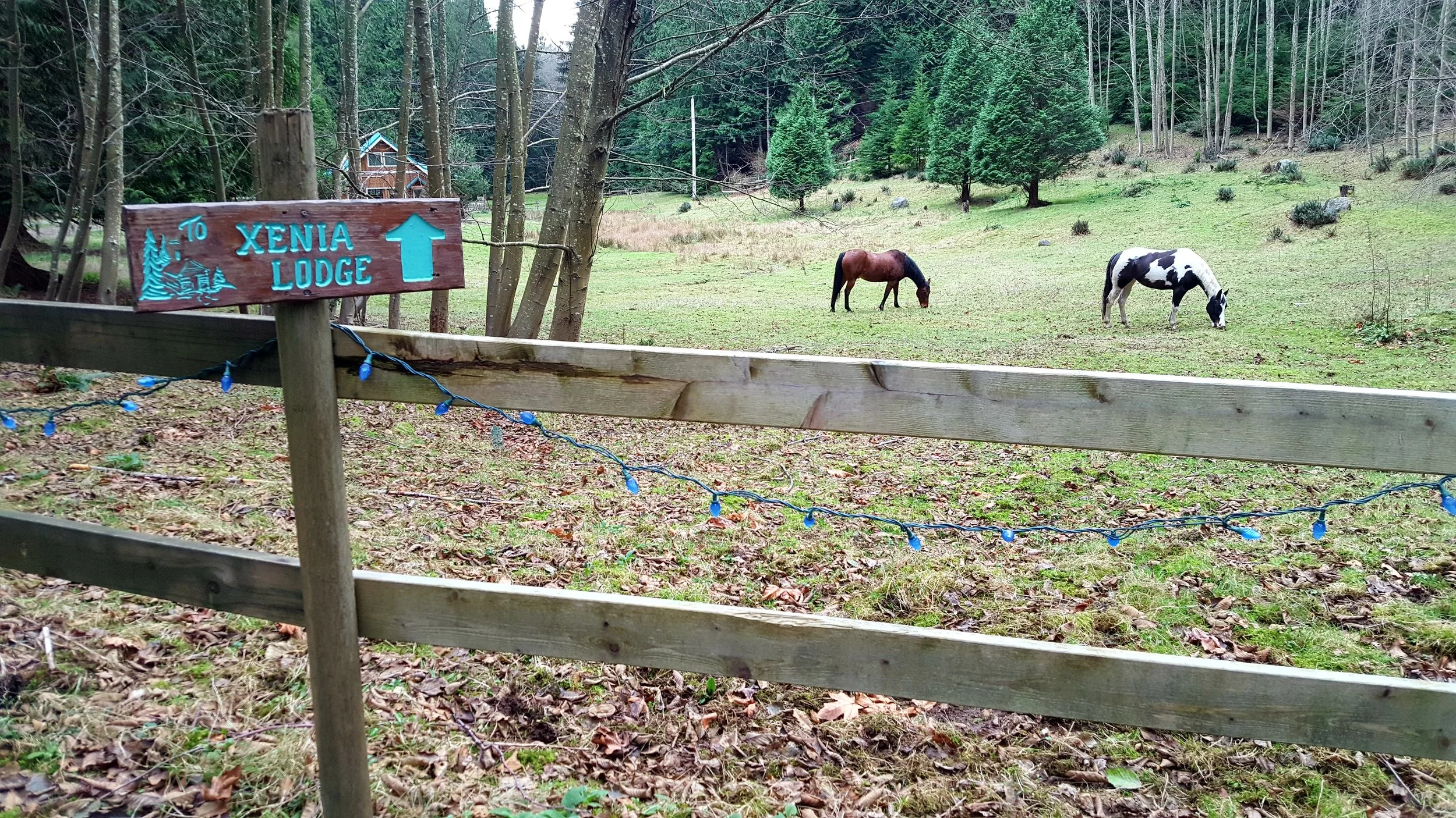 Back at the lodge, Saria is finishing up her beautiful breakfast spread. I had a piece of cheese & spinach quiche, some hot homemade oatmeal with apples & walnuts and some yogurt granola & berries. Eating like a QUEEN! I decided to take my coffee outside and go for a little walk to Opa, the 1,000 year old tree. On the path from the Lodge to Opa, there was a small field and a barn with 2 horses. Opa is also right next to the Sanctuary. I was tempted to go into the Sanctuary to see if someone needs to be relieved, but instead, I stick to my plan and drink my coffee with my blanket on a bench in front of Opa. Just as I am about to get up, a deer crosses my path and we just stare at each other for about 30 seconds. I head back to the lodge to put my mug away and then back to Maple cabin to get ready for my adventure.