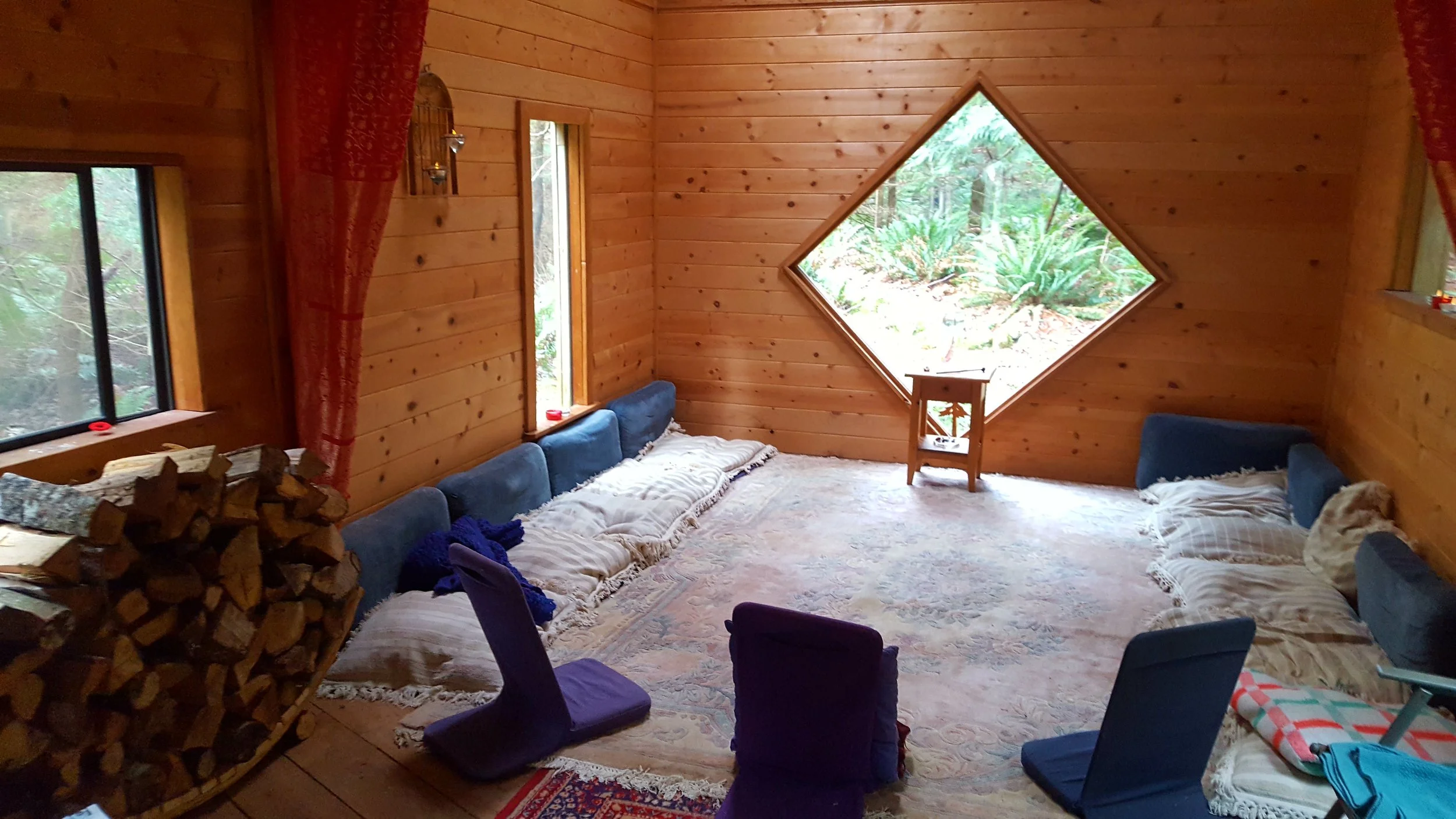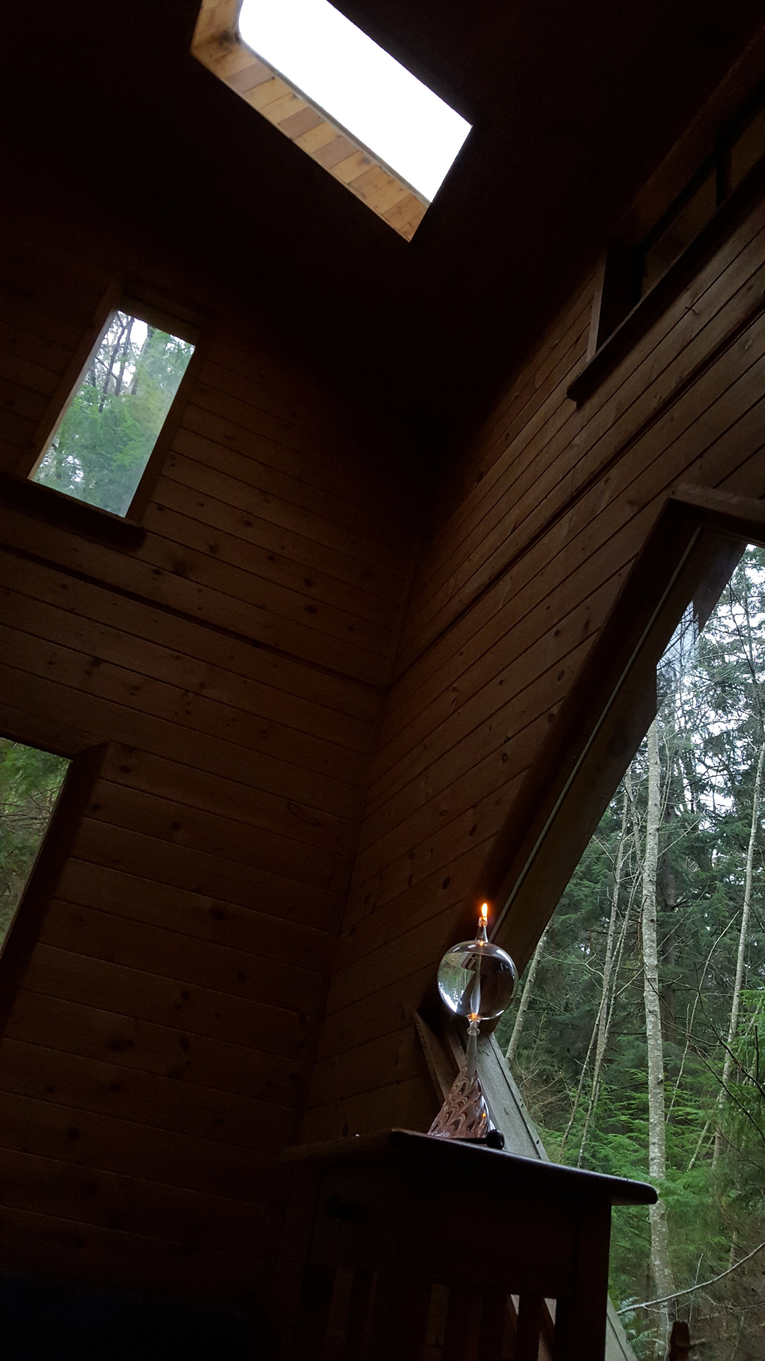 At 10pm I head to the Sanctuary with my blanket and flashlight and I am fully prepared to sleep in there. Renee is in there and she is meditating. I get comfy on the opposite side of her and close my eyes. It is beautiful to be in here in the dark - the wood burning fireplace is on, and all I can hear is the crackling of the wood, and I can see from the slight ambience that the fire is giving off. A few more people come and go, to my surprise, but at 12:30am, I decide to call it a night and head back to my cabin.
