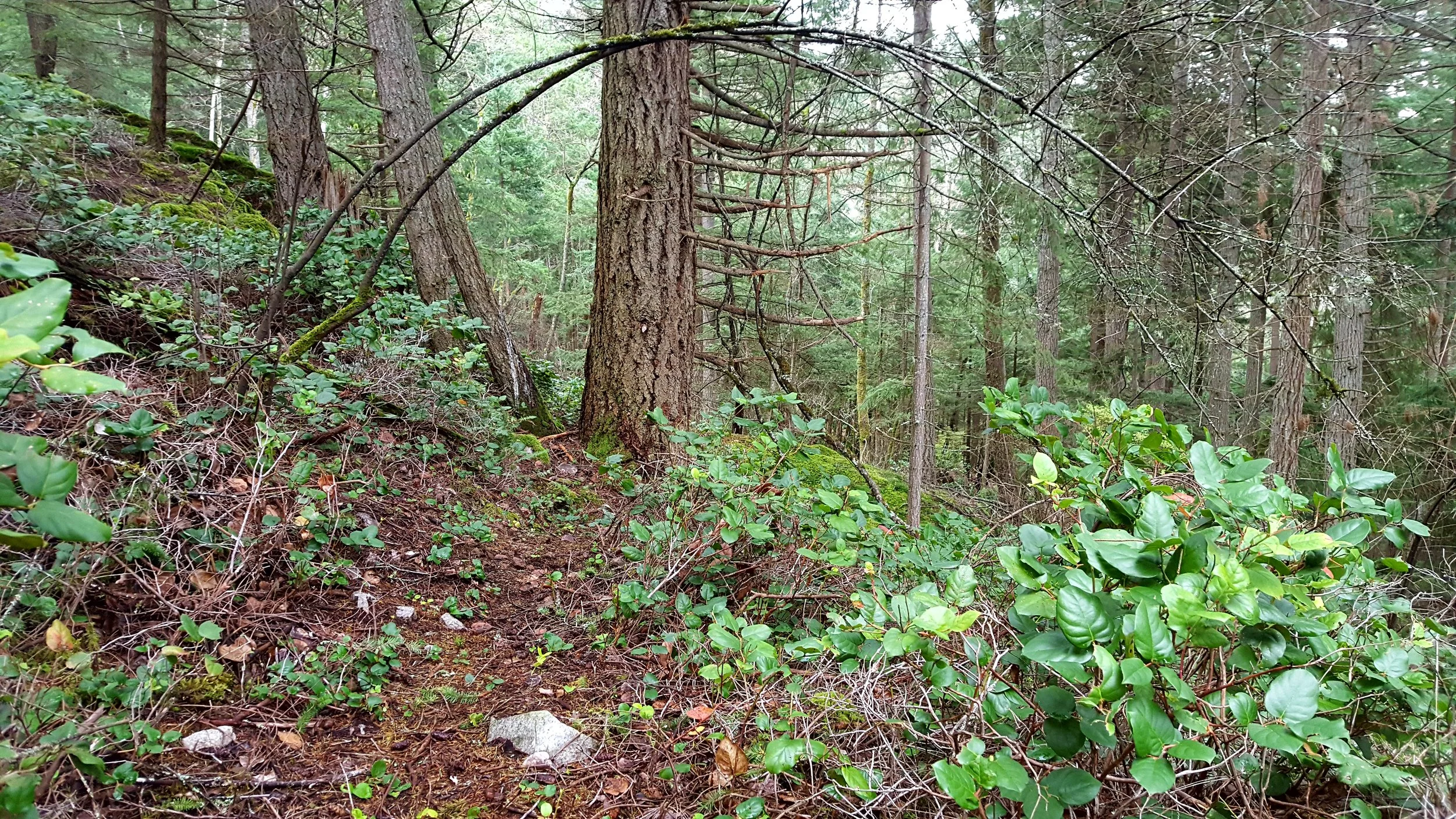 When we first got here, Angelyn explained how there is a lake called Honeymoon Lake quite close to this property and it's a bit of a hike to get there. She had maps back at the Lodge for us to use if we wanted but I just thought, I am always SO heavily reliant on Google Maps, that I JUST wanted to explore and see where my feet could take me, without a map for once. All I knew was that it was up the main logging road out back. After 2 wrong paths taken, I finally found the one that led up the mountain. I heard a sound coming from the forest to my left and when I looked over, there was a deer staring RIGHT into my eyes. We stood there for about a minute before I decided to continue on, she didn't run from me at all and it felt really nice. There were quite a few switchbacks and I quickly started to feel a bit panicked. I had never really hiked alone before, so my motivation to get to the top was a little lacking. Eventually I got to the top, at Honeymoon Lake and I was a little disappointed. It was a reservoir lake, so it wasn't as pretty and magical as I'd imagined it would be. Because of my disappointment, I wasn't ready to just settle for that as my adventure. I spotted another area to climb and get on top of these massive rock formations. Why are we so quick to default to discontentment? I pondered this afterwards of course, but at the time, I just wanted more. Getting up onto the rocks was difficult. They were moss-covered which made it hard to know where to put your next step but when I got to the top it was beautiful up there. It was the kind of untouched, not-maintained kind of beauty. As I started my descent, I realized I was not on the same path as when I came up.