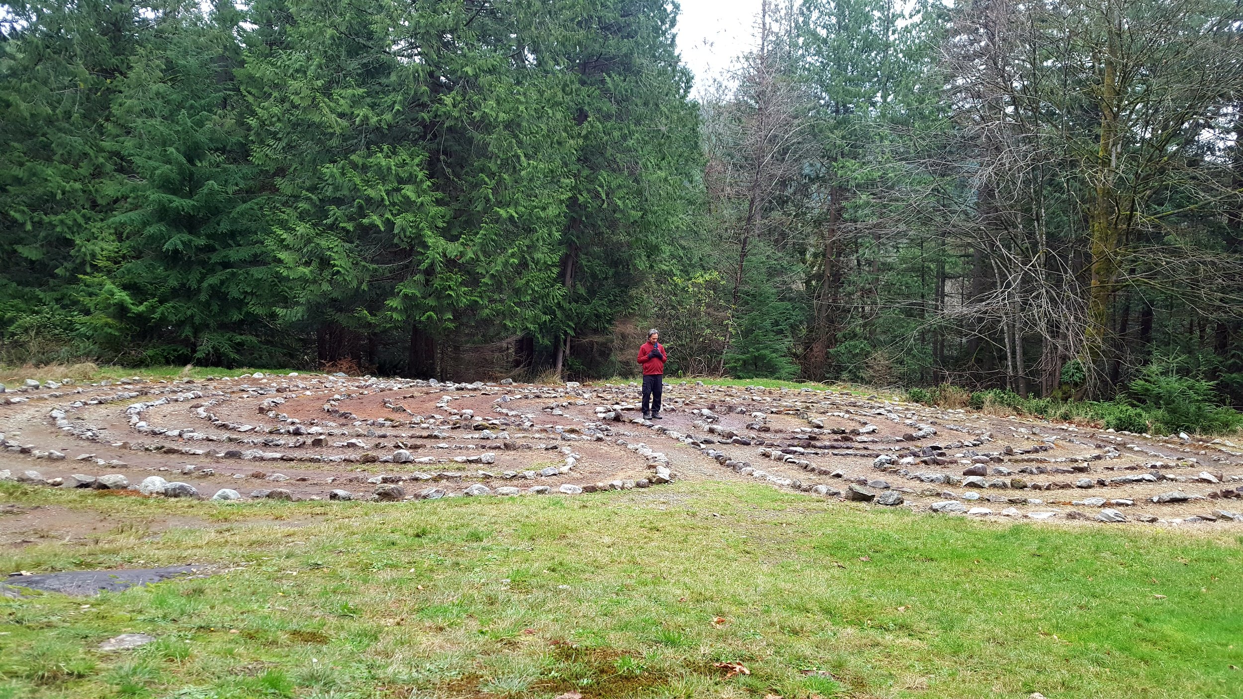 Feeling a little depleted from that experience, I decided I needed to feel some positivity so I walked over to the Labyrinth. I saw Doctor David there and he seemed to be praying at the heart of the Labyrinth. I sat on a bench and watched him for a while, and as time went on, he began walking around the Labyrinth path very slowly. He seemed to stop a little bit after each step he took and that's when the idea hit me.